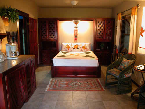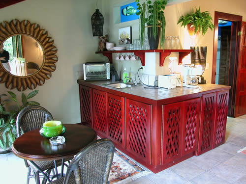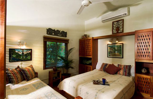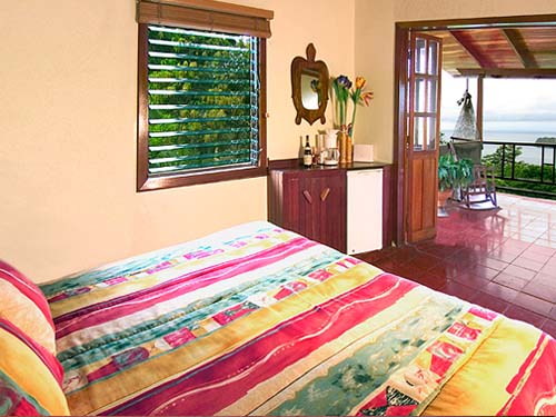 Refreshingly unique, each of the 12 villas (available in combinations of one or two bedroom suites) offer a distinct personality with tasteful furnishings, spacious open-plan architecture, modern amenities, large balconies and ocean-view hammocks to sit back and drink in the tropical surroundings. All of our rooms are equipped with air conditioners as well as ceiling fans for those who prefer to take advantage of the ocean breezes that our mountainside location affords.